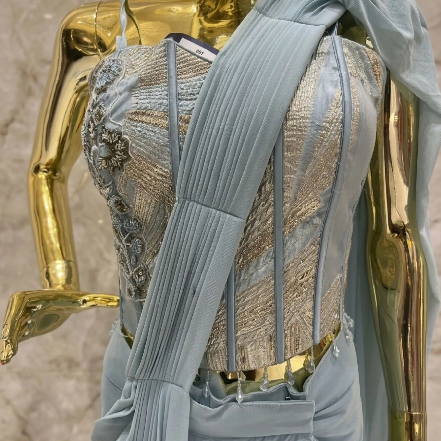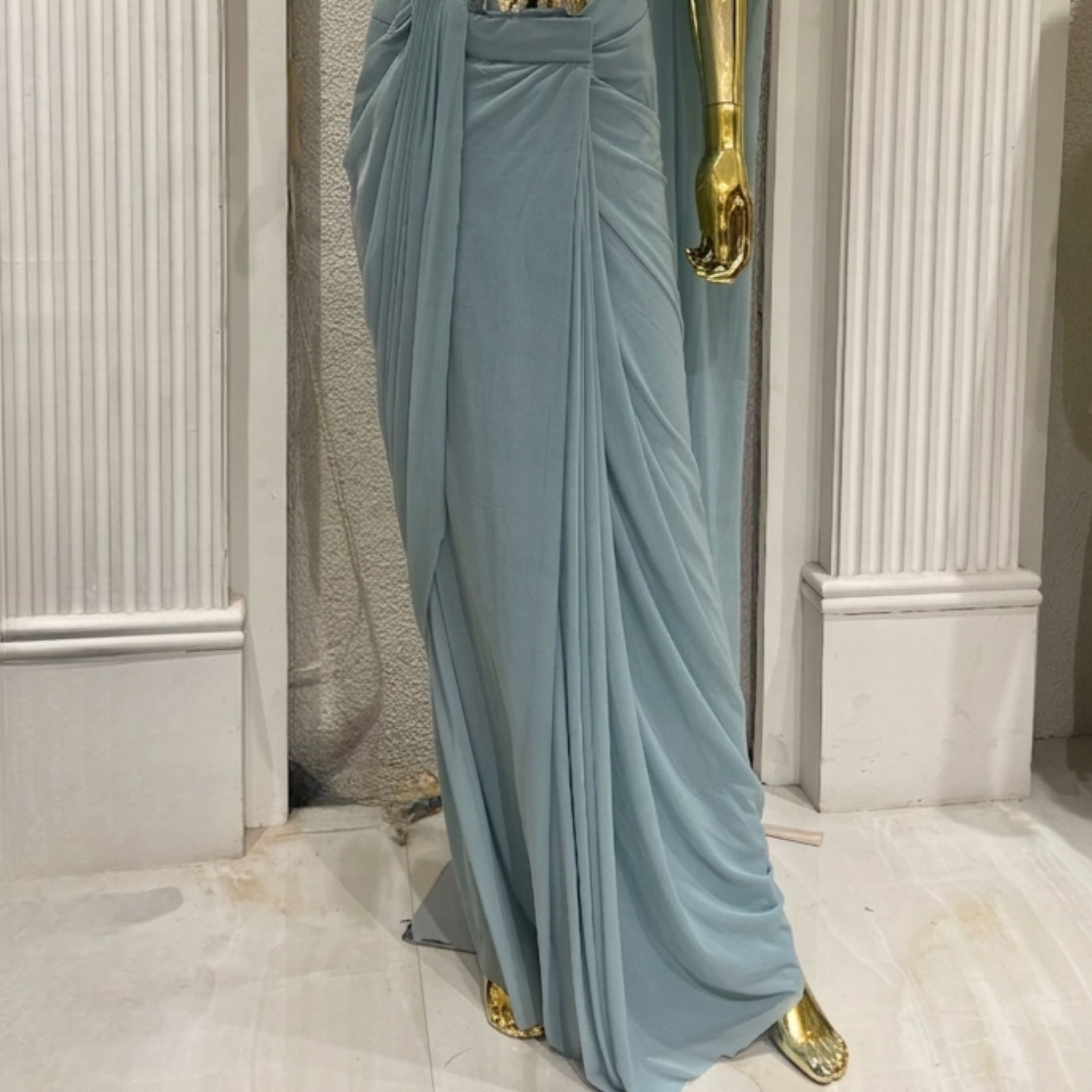 At Kharatis, every piece is crafted to reflect premium quality and refined aesthetics. The soft powder blue hue exudes grace and subtle luxury, making it a perfect choice for wedding functions, cocktail events, receptions, and festive celebrations.